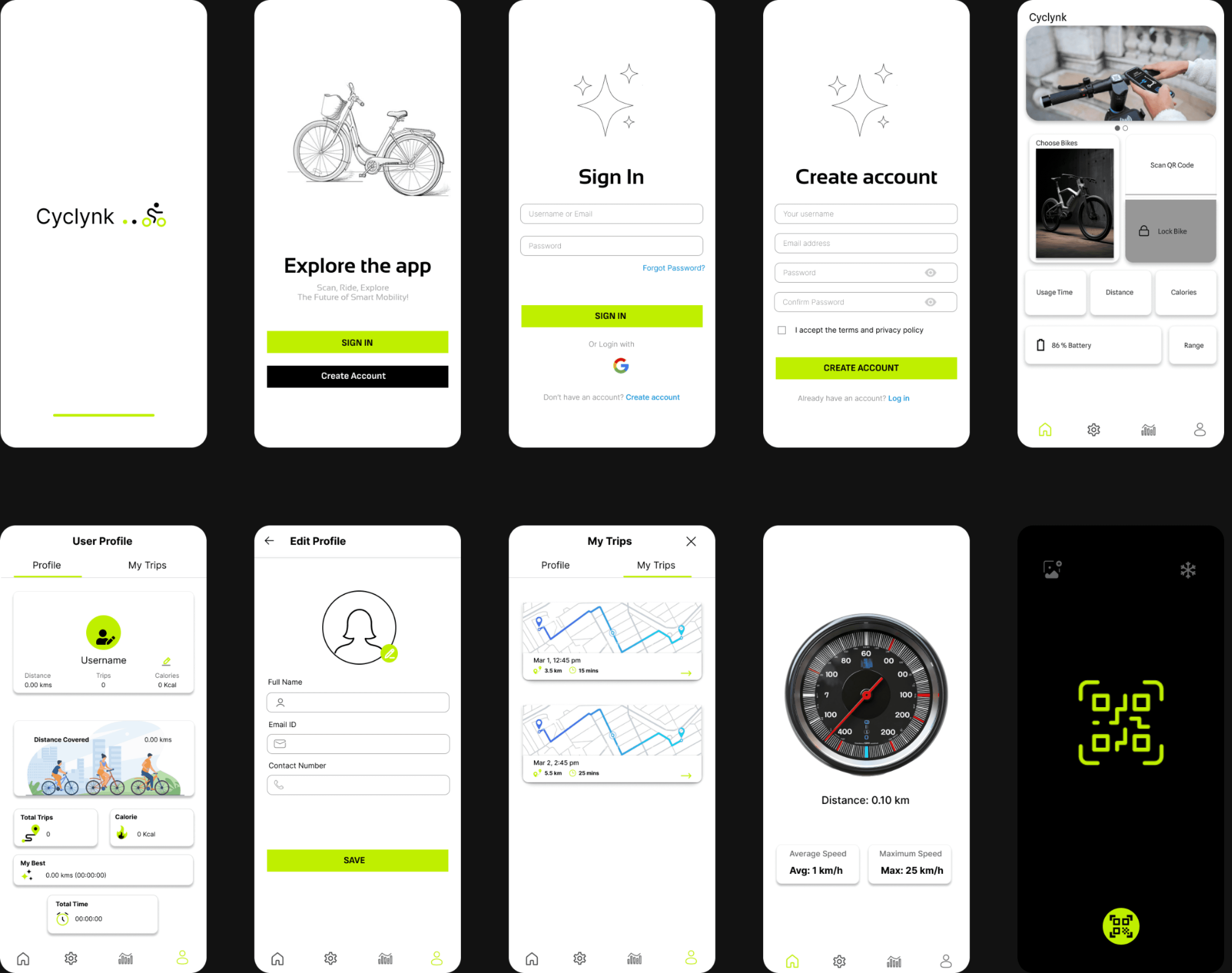 Designed the CycLynk app UI for a seamless, user-friendly experience with modern aesthetics and intuitive navigation, ensuring smooth and engaging interactions.